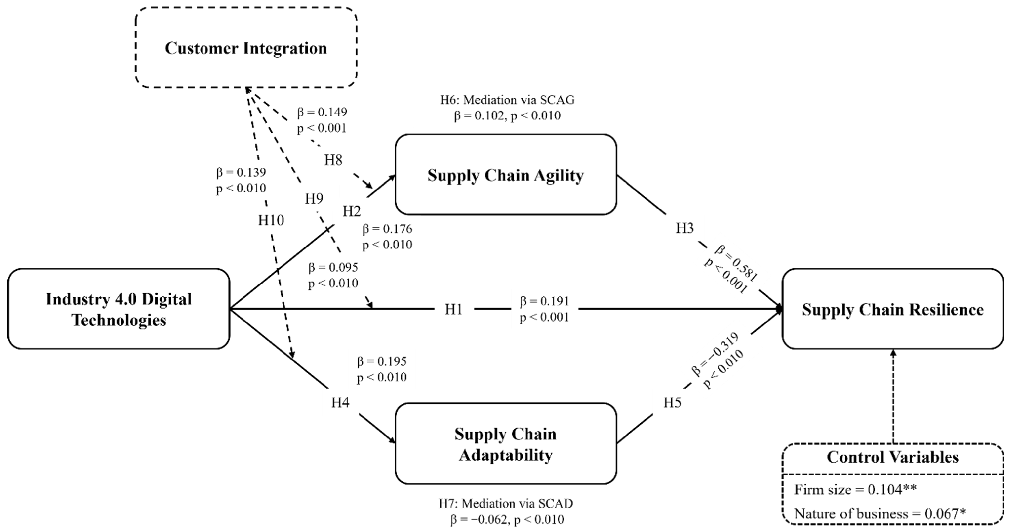 - How does customer integration moderate the effects of Industry 4.0 digital technologies on agility, adaptability, and, ultimately, supply chain resilience?