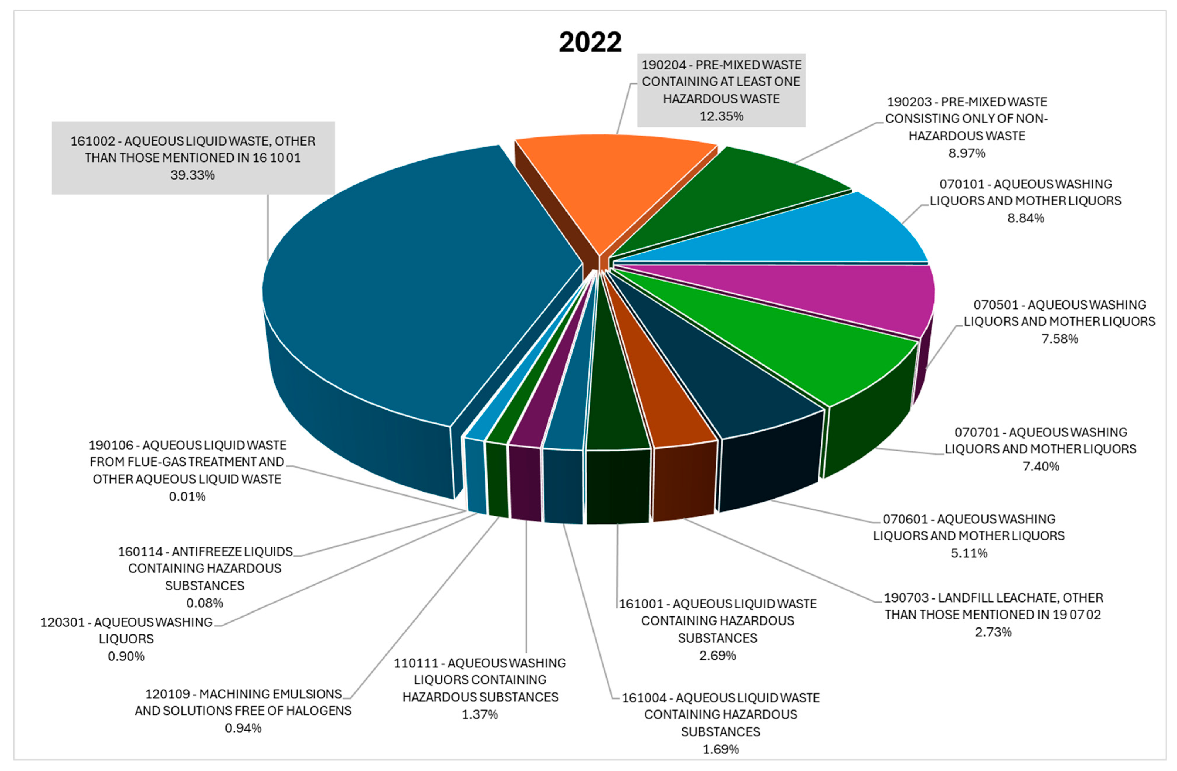 - Kim, L.; Cuciureanu, A.; Pascu, L.F.; Tache, O.C.; Catrina, G.A. A Comprehensive Methodology for Assessing the Hazardousness of Waste Categorized in the European Union Legislation as “Mirror Entries”—Case Studies. Environments 2023, 10, 183. [Google Scholar] [CrossRef]
