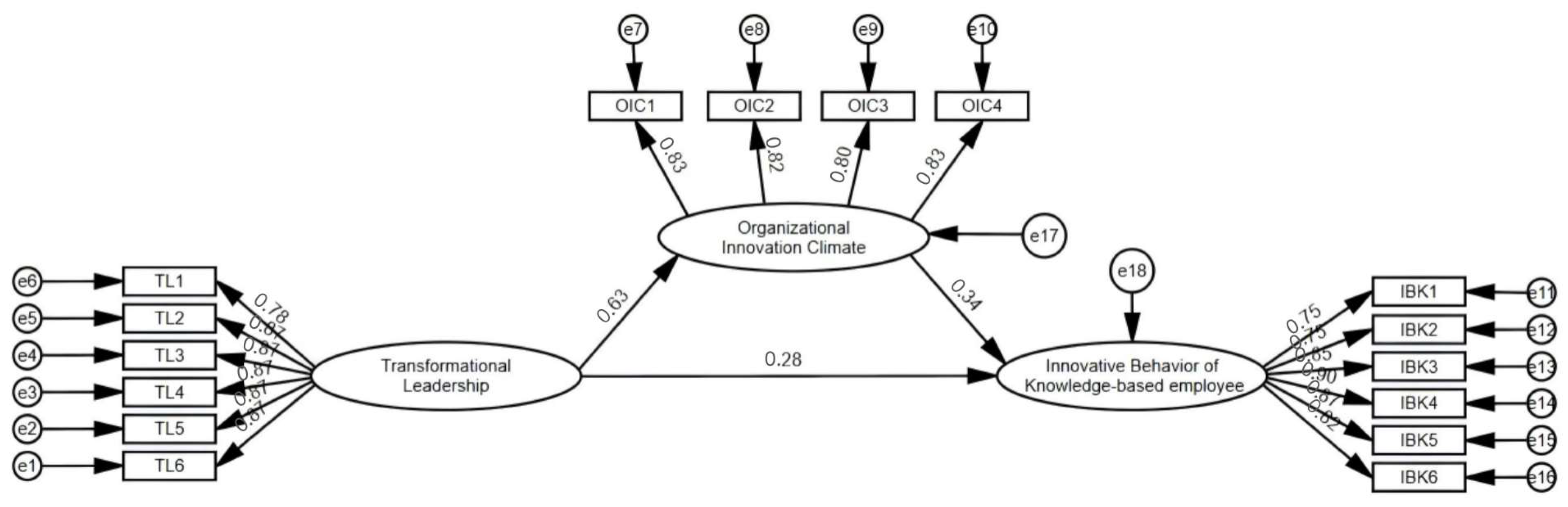 2.2. Transformational Leadership and Organizational Innovation Climate