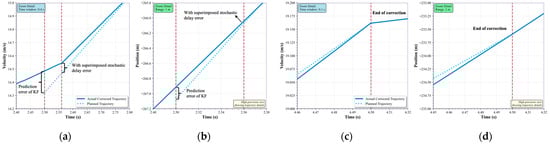 It is worth noting that in this study we employed the standard Kalman filter rather than more advanced variants such as the Extended Kalman Filter (EKF) or particle filter. This choice was made because the vehicle motion dynamics are modeled in a linear form and the compensation only requires short-term state prediction of position, velocity, and acceleration. Under these conditions, the standard Kalman filter provides adequate estimation accuracy with minimal computational burden (less than 0.05 s per cycle), which is essential for real-time implementation. While EKF or particle filters could potentially improve estimation in highly nonlinear or more uncertain systems, they also introduce additional computational complexity and may reduce real-time responsiveness. Future work may explore these advanced approaches if more complex dynamics or uncertainty models are incorporated.