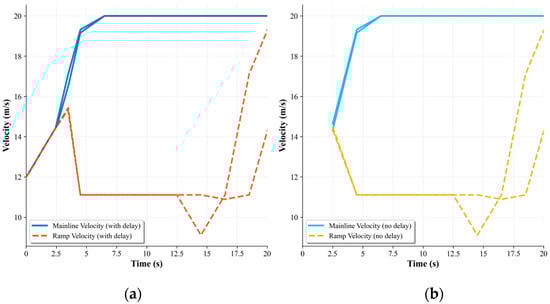 Merging Speed Profile Comparison. (a) With delay. (b) No delay.