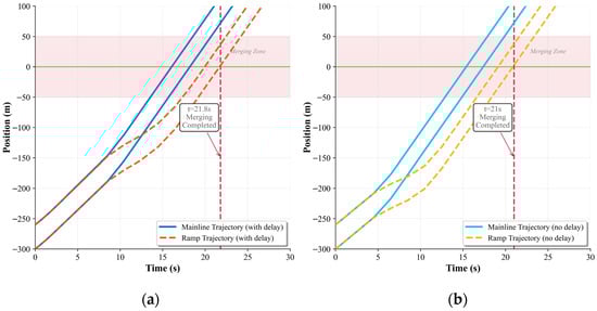 Merging Trajectory Comparison. (a) With delay. (b) No delay.