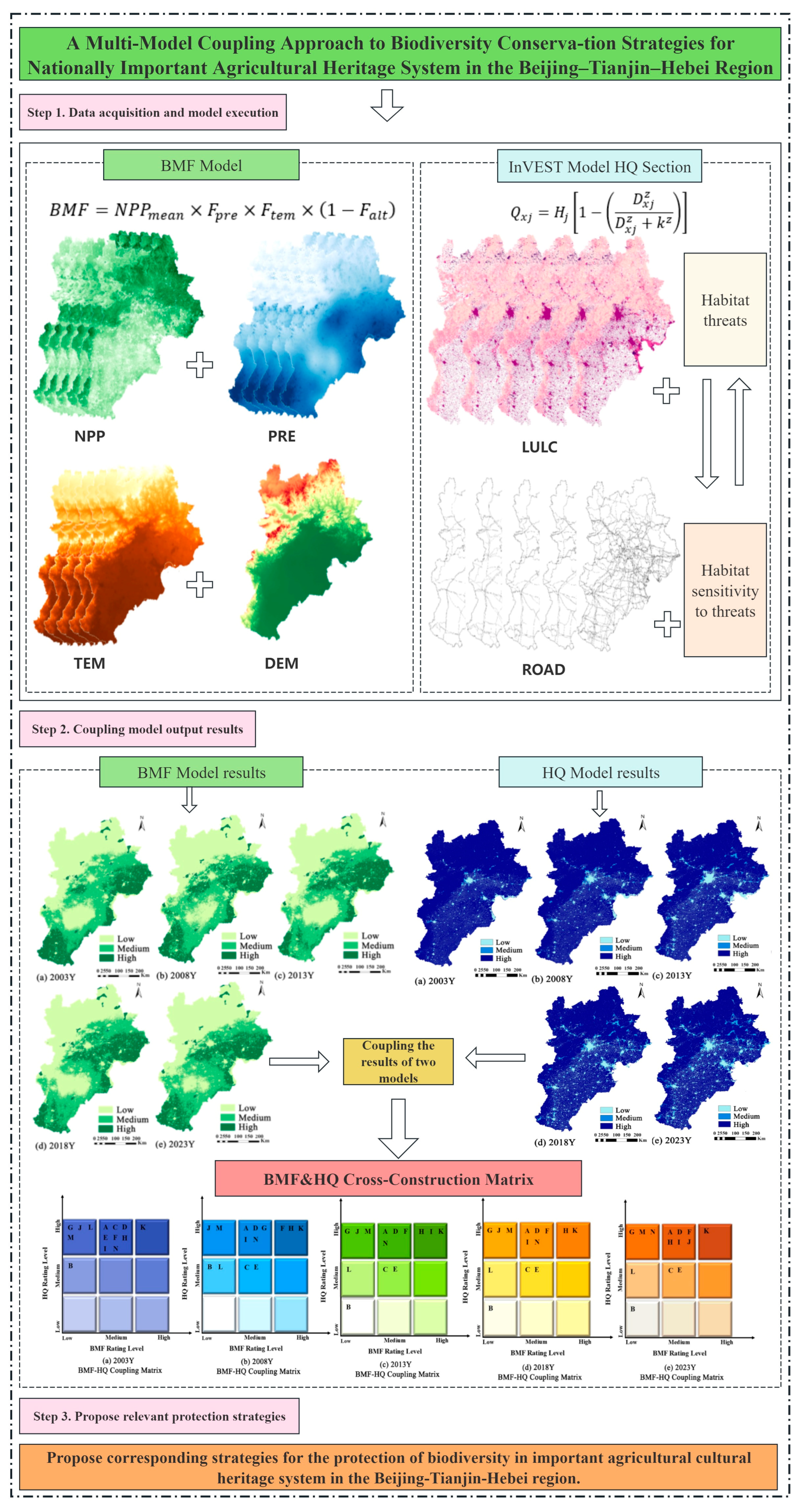 APA StyleWei, J., Ji, Y., Yang, D., & Liang, F. (2025). A Multi-Model Coupling Approach to Biodiversity Conservation Strategies for Nationally Important Agricultural Heritage Systems in the Beijing–Tianjin–Hebei Region. Sustainability, 17(17), 7959. https://doi.org/10.3390/su17177959