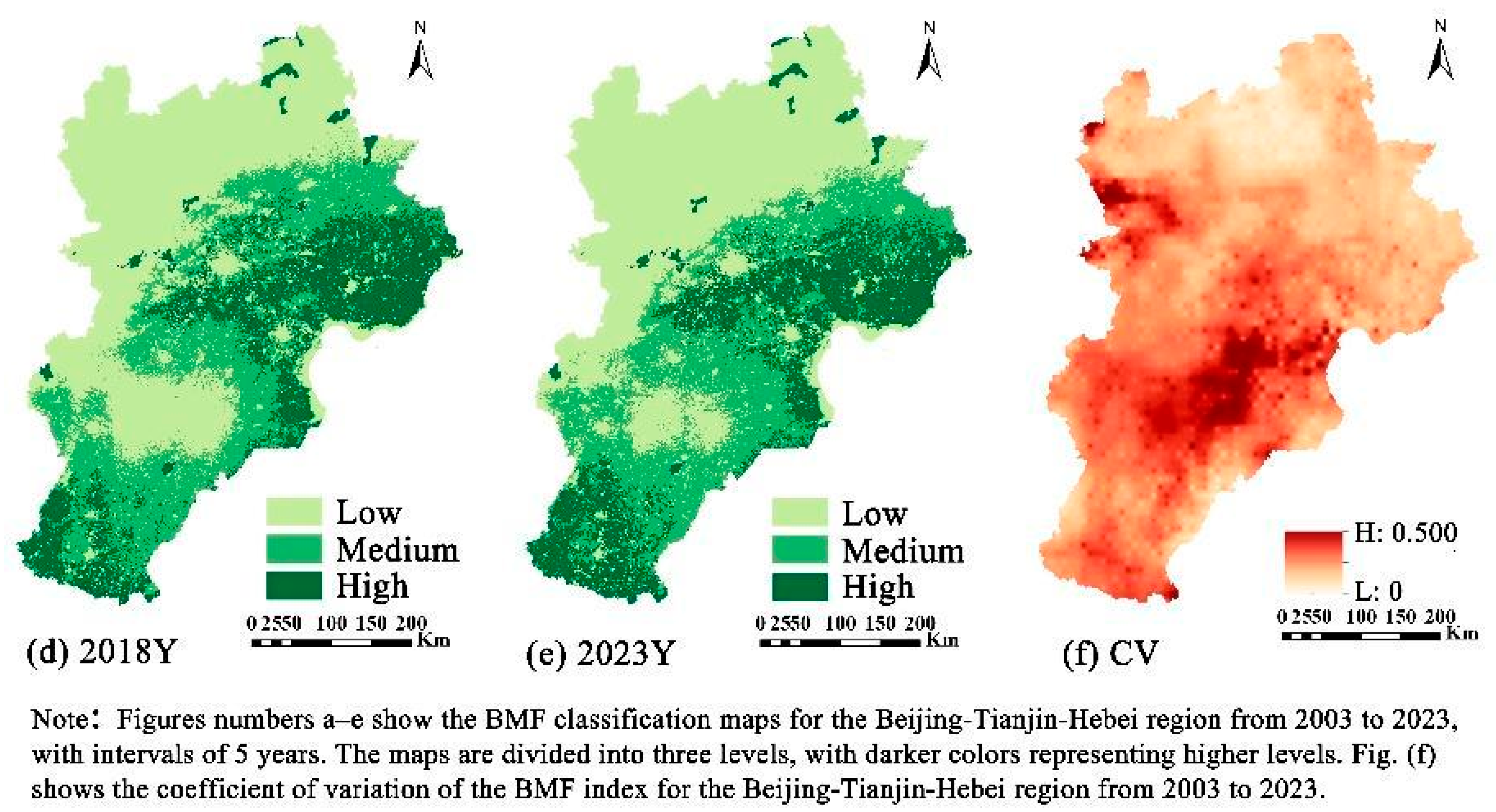 - Dual-high zones (high HQ–high BMF): The focus should be on keeping current ecological advantages. Long-term conservation and monitoring mechanisms are needed to protect against external disturbances.