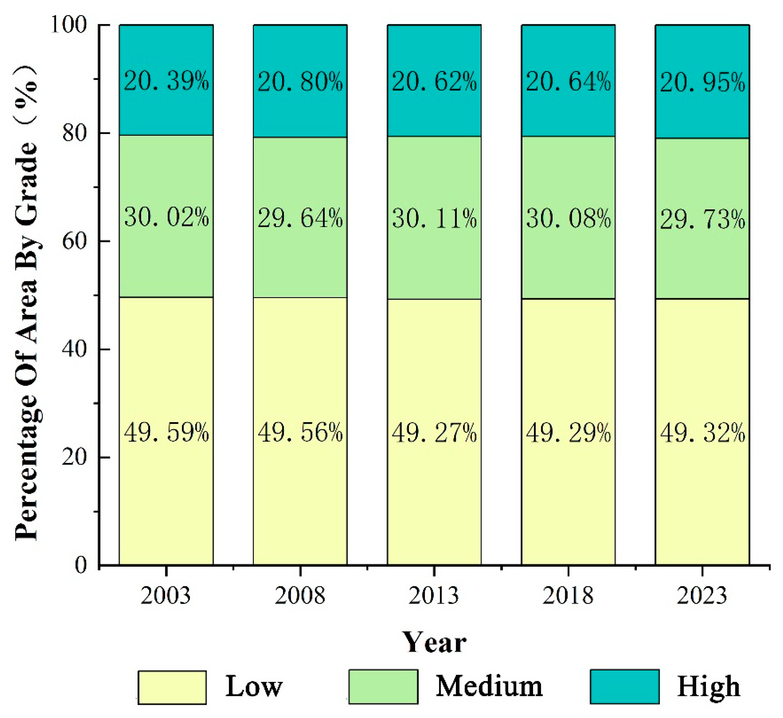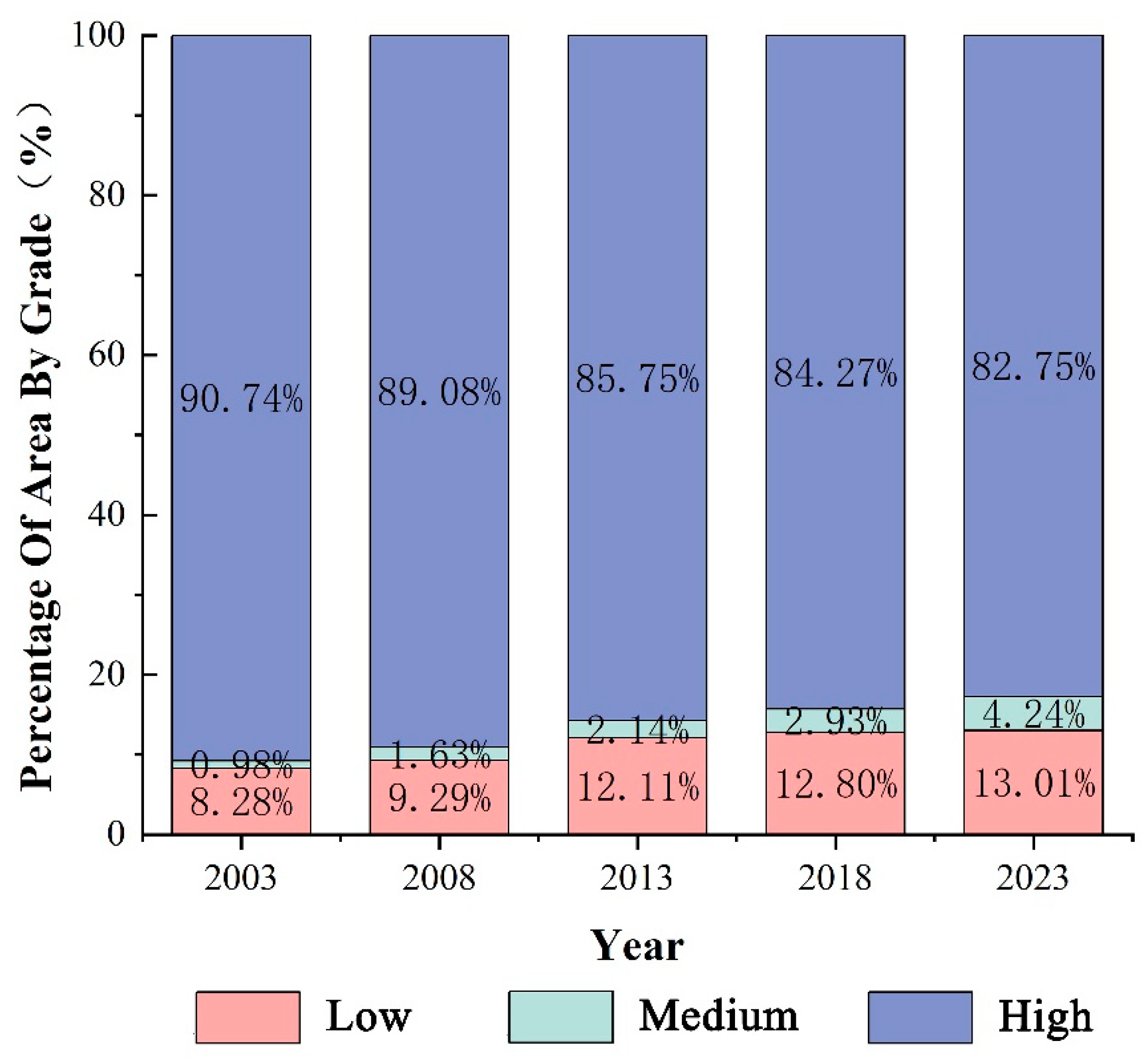 - Other zones: The main drivers of degradation must be clarified. If human disturbances dominate, measures should include land-use optimization and restrictions on development. If natural factors dominate, restoration should focus on creating microhabitats, recovering native vegetation, and revitalizing traditional agro-technical systems. These steps can strengthen ecological carrying capacity and biodiversity.