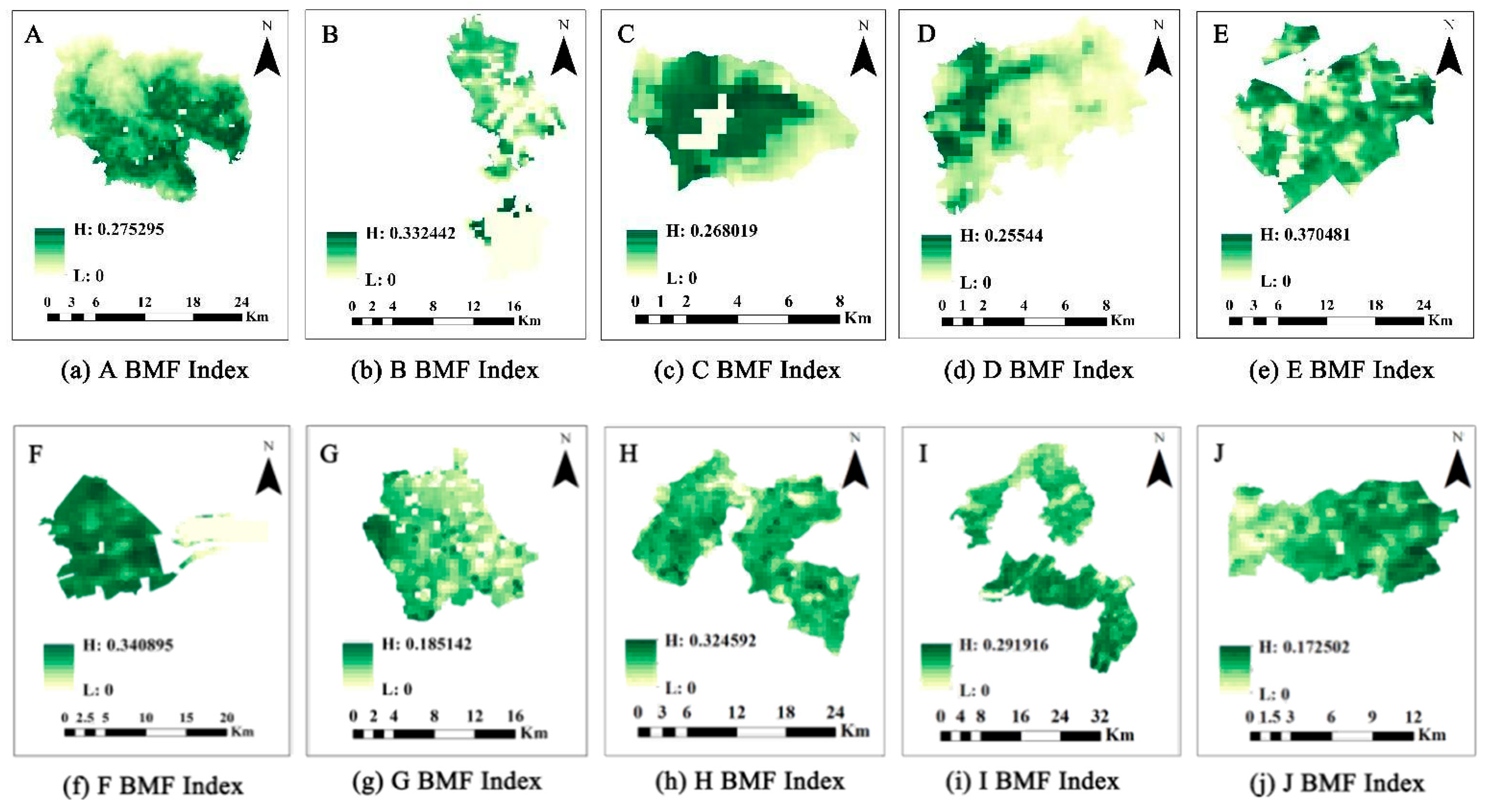 2.3.1. Biodiversity Maintenance Function (BMF) Index Model
