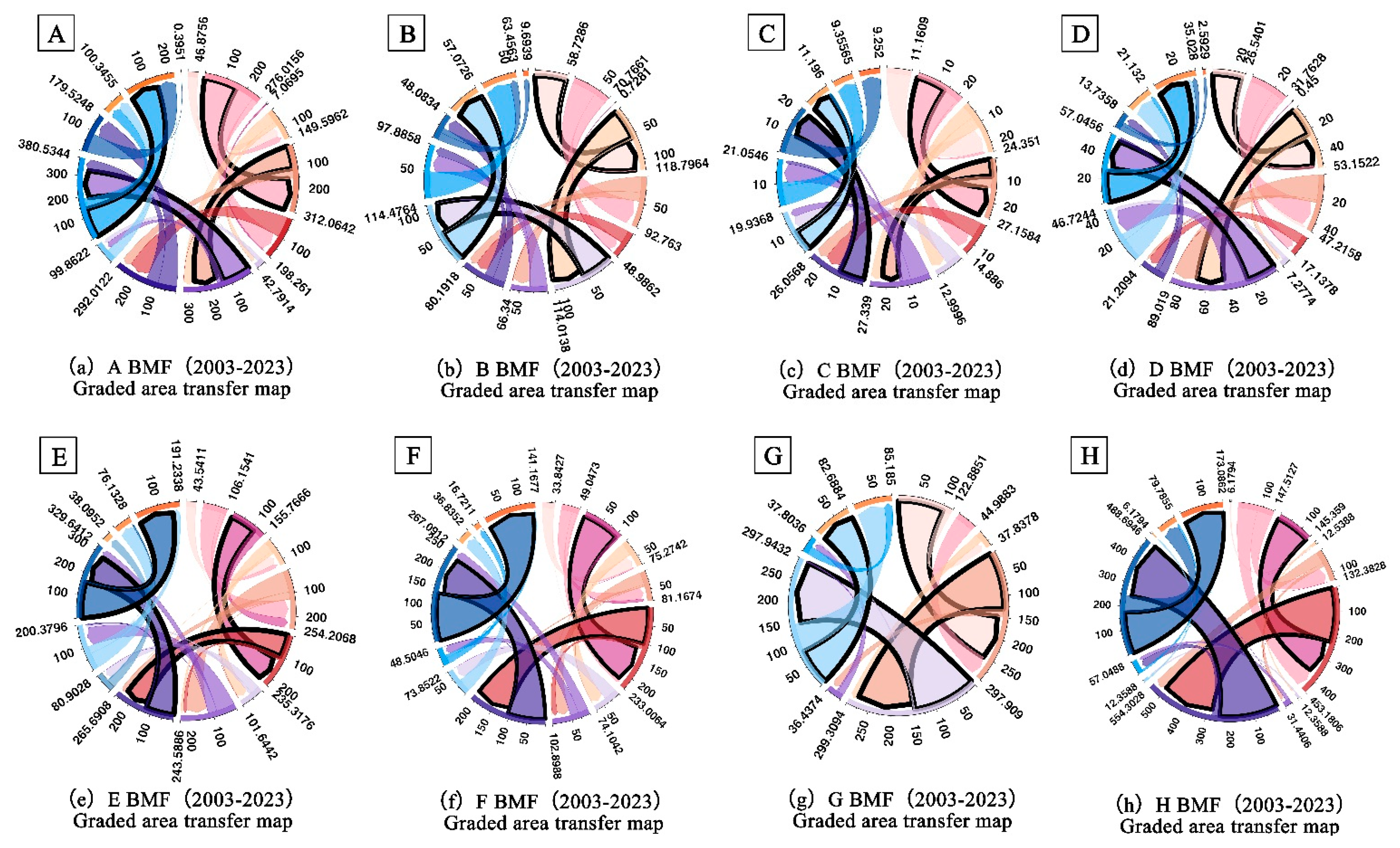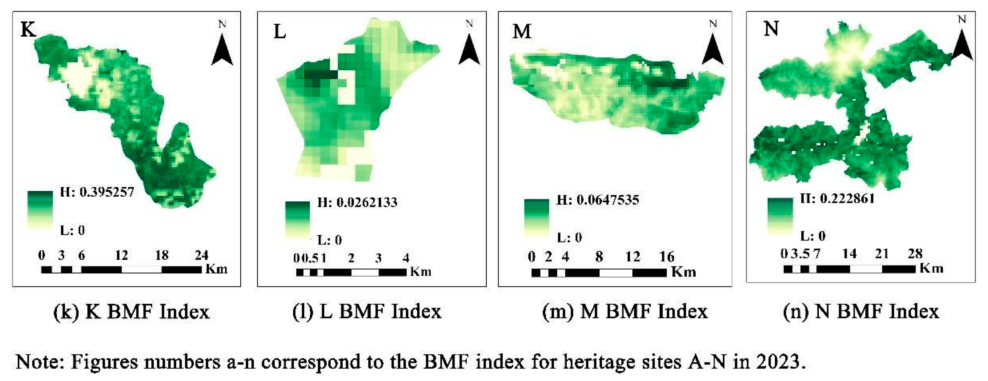 - Dual-low zones (low HQ–low BMF): These systems are most affected by human activities. They should be placed in strict protection areas with tightly controlled development intensity. Ecological compensation and pilot restoration programs should be prioritized to prevent further loss of core agricultural and cultural values.