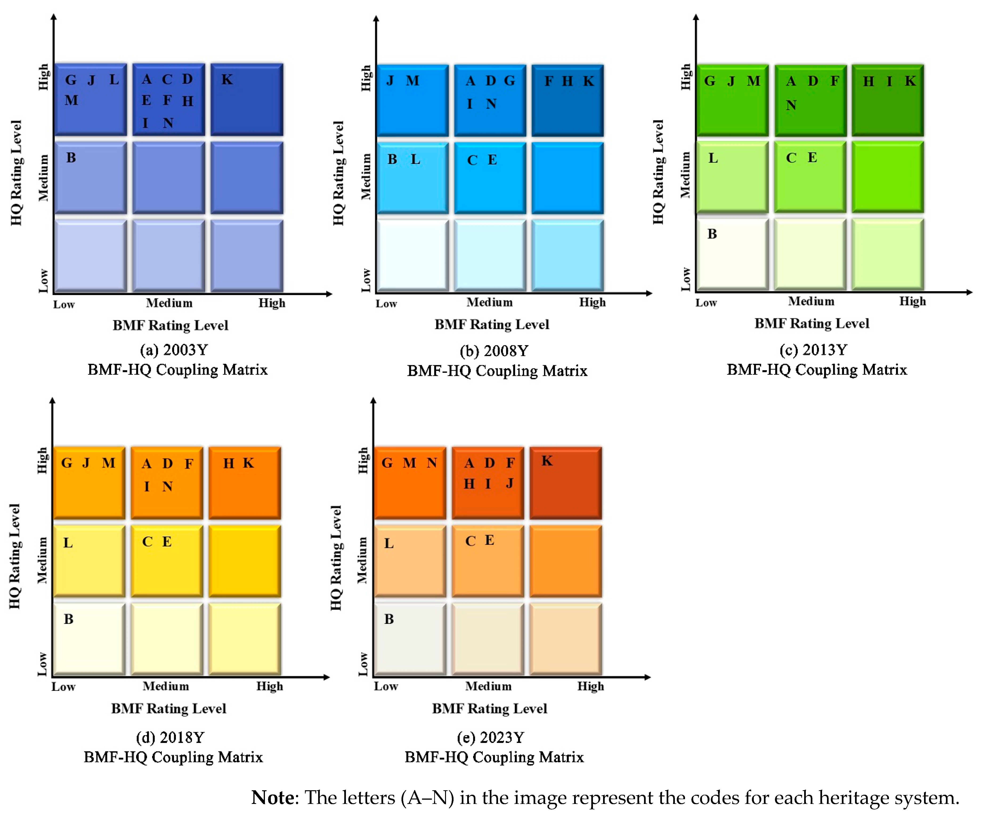 3.3. BMF–HQ Coupling Analysis of the 14 Agricultural Heritage Systems