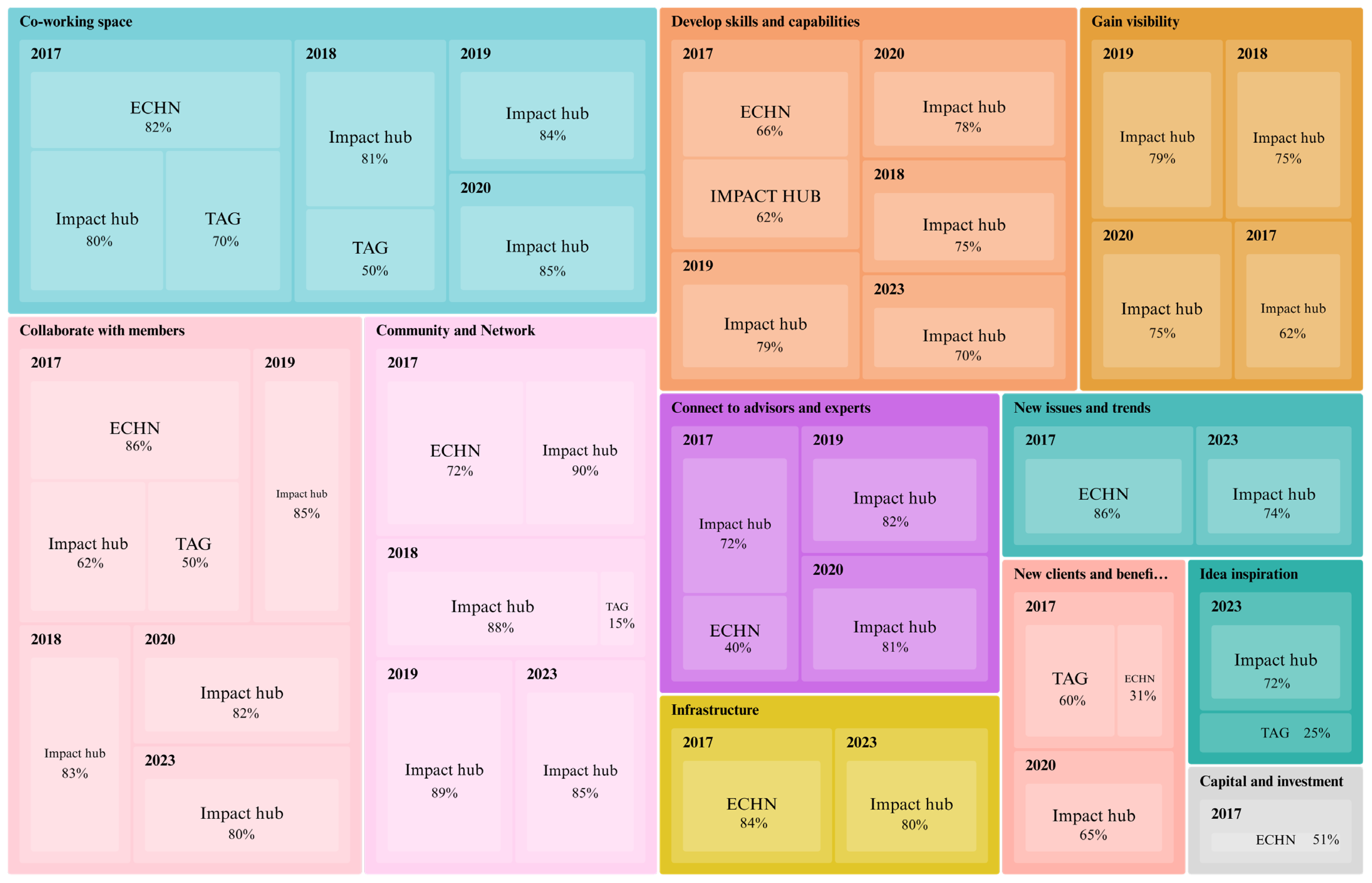 | Tech/Digital Hub | [4,6,56,57] | - Space for co-working oriented to build a tech-oriented community - Provide support and services for companies releasing tech-oriented products to the market - Support the whole innovation chain from ideation and proof of principle - an ecosystem that enables businesses to reach required knowledge, expertise and technology for testing and experimenting digital innovations relevant to their products, processes, or business models |