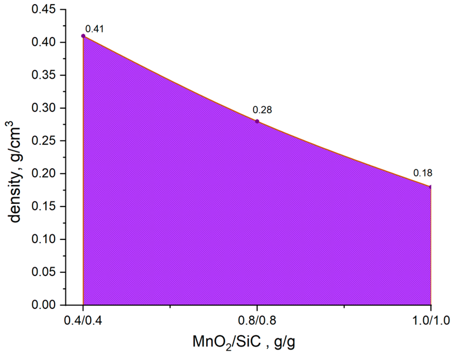 | Sample No.  | MnO2, g  | MnO2/SiC | Density g/cm3  | Sample Composition wt%  | ||