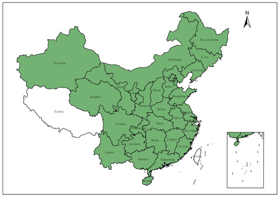 This study is based on 30 provincial-level administrative regions in China (excluding Tibet, Hong Kong, Macau, and Taiwan). There are significant differences in the level of economic development, transportation patterns, land use patterns, and policy intensity among the study regions, which are highly representative and can fully reflect the study theme. A map of the study area is shown in Figure 1.
