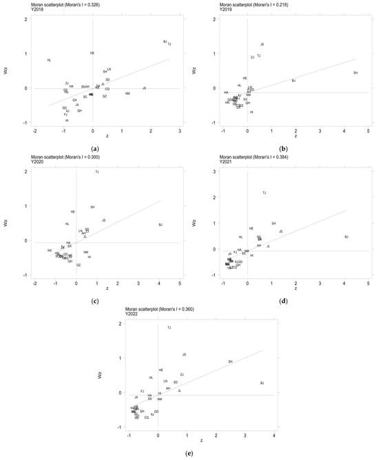 (2) The green level of transportation exhibits a significant positive spatial autocorrelation, indicating a clear trend of spatial agglomeration in the green transformation of transportation across different regions. This trend has become increasingly pronounced over time. The agglomeration effect fosters positive spillovers, where provinces with higher levels of transportation greenness contribute to the green development of neighboring regions, creating a radiation-driven effect that stimulates the advancement of surrounding areas. Concurrently, the correlation between the intensity of ER and the green level of transportation across provinces has progressively strengthened, underscoring the critical role of ER in generating spatial externalities that facilitate the green development of transportation.