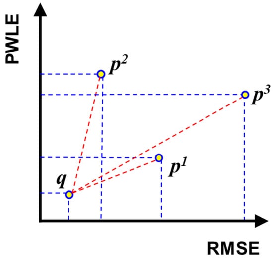Conceptual diagram of the Euclidean distance method, illustrating how PWLE and RMSE are integrated into a single performance index.
