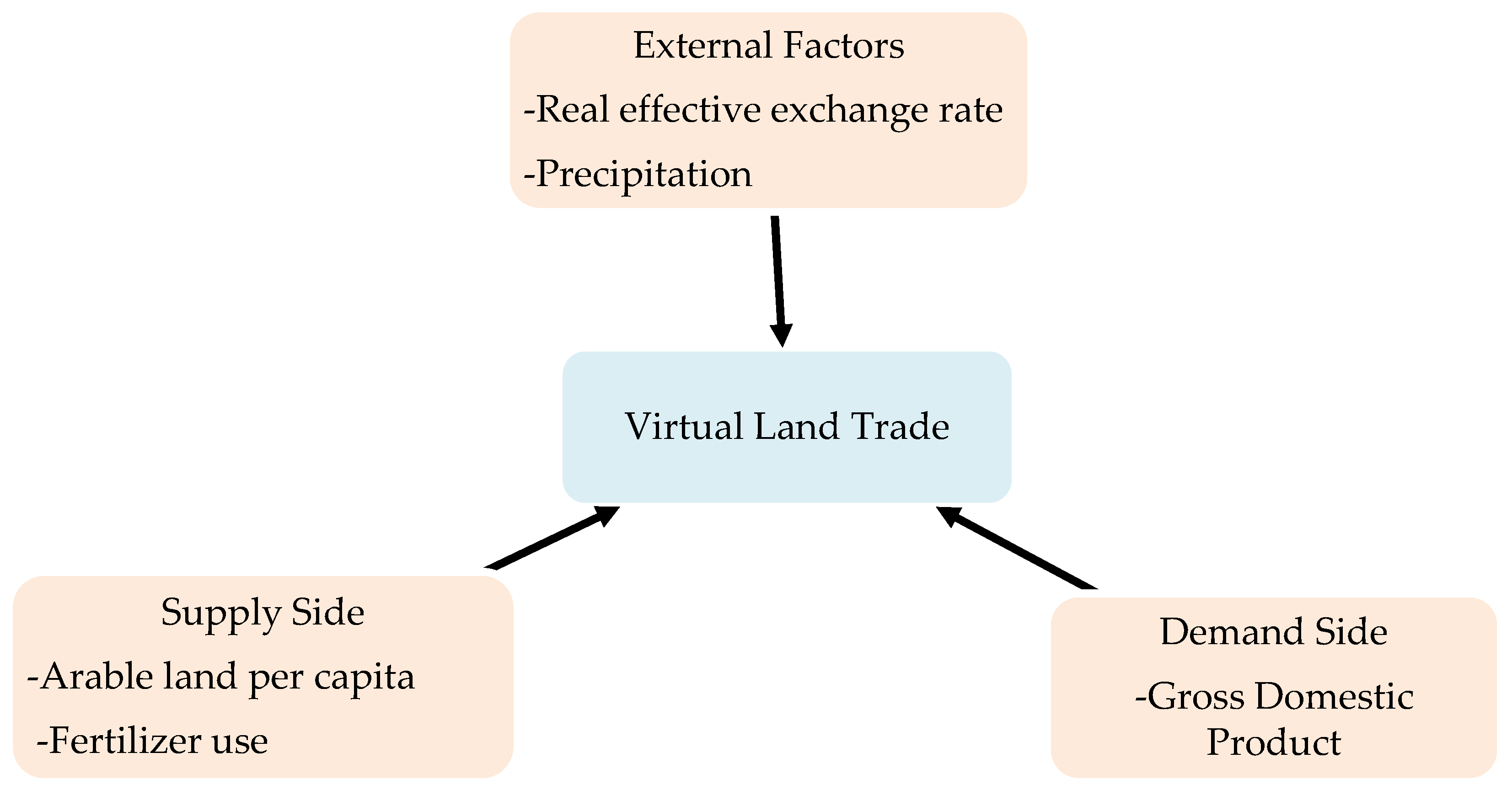 5]. In this context, the systematic integration of virtual land flows into agricultural and trade policy frameworks is essential for ensuring sustainable food security and the effective, long-term management of limited arable land resources—especially in land-scarce nations.