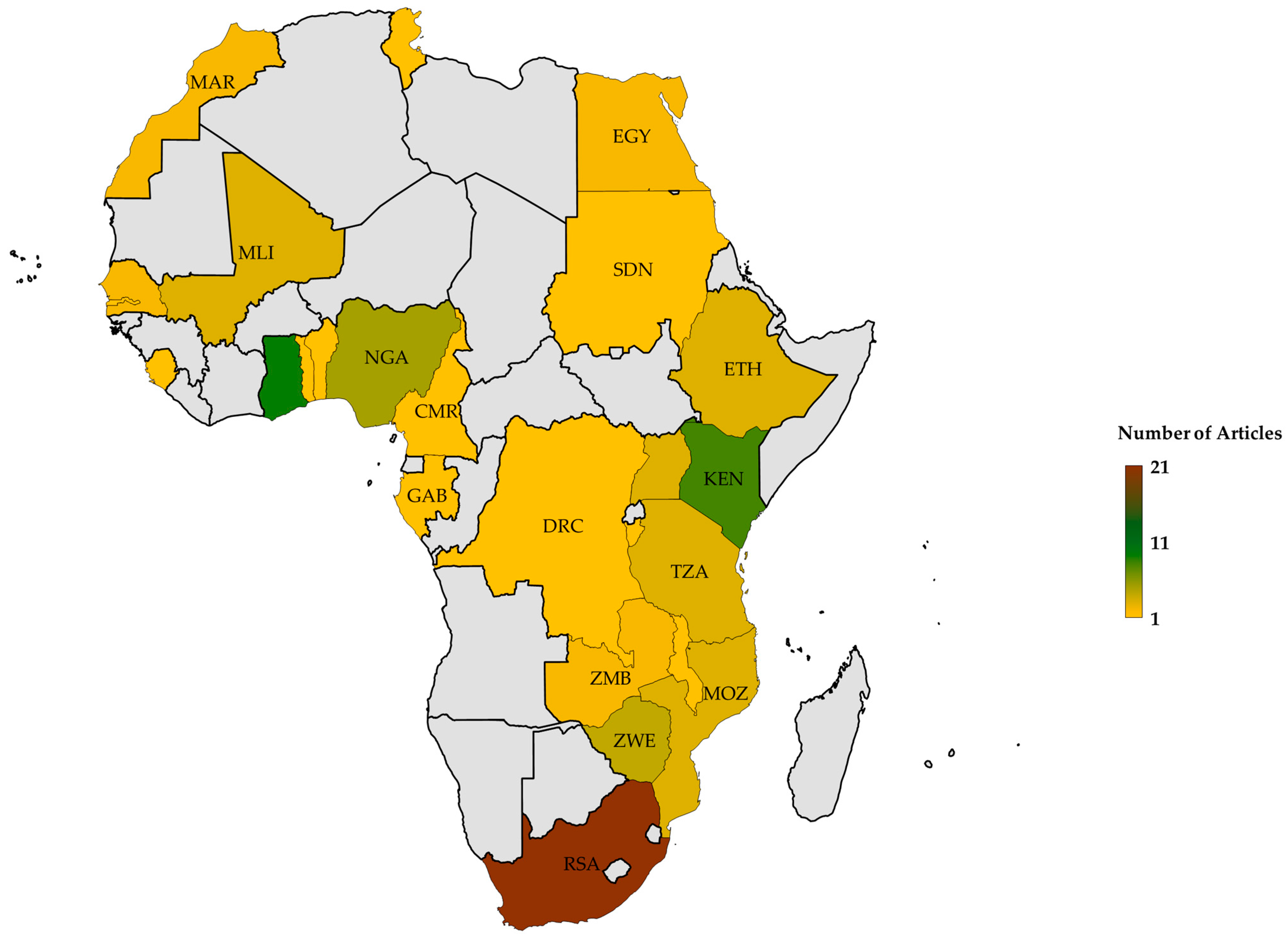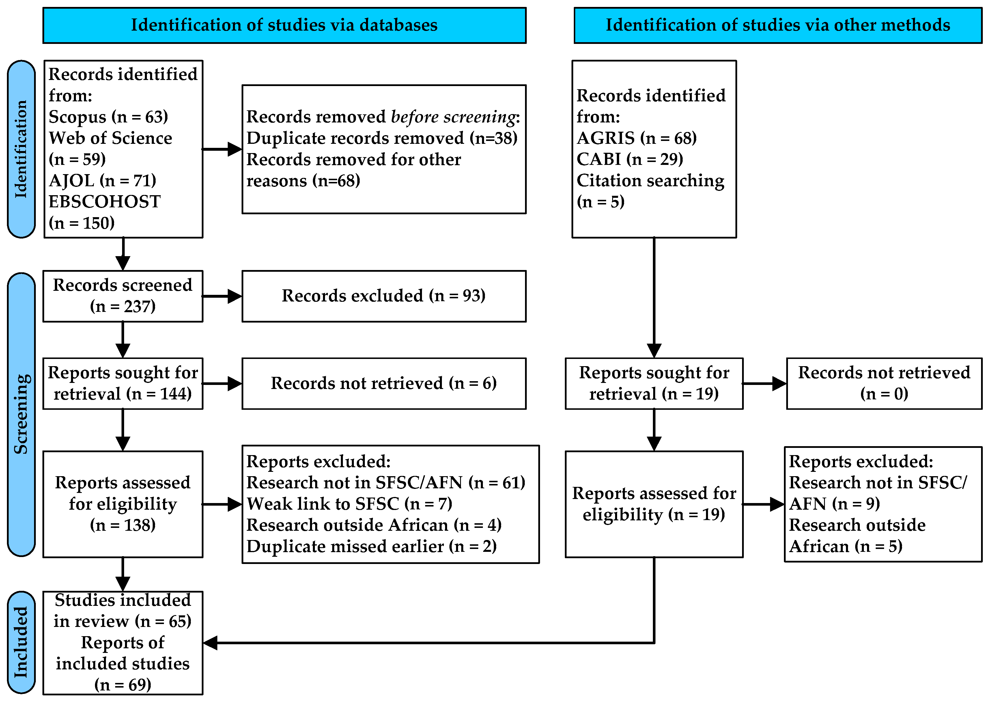 | Geographical Location | Studies conducted in African countries, with a focus on SFSCs. | Research focused on SFSCs outside Africa. |