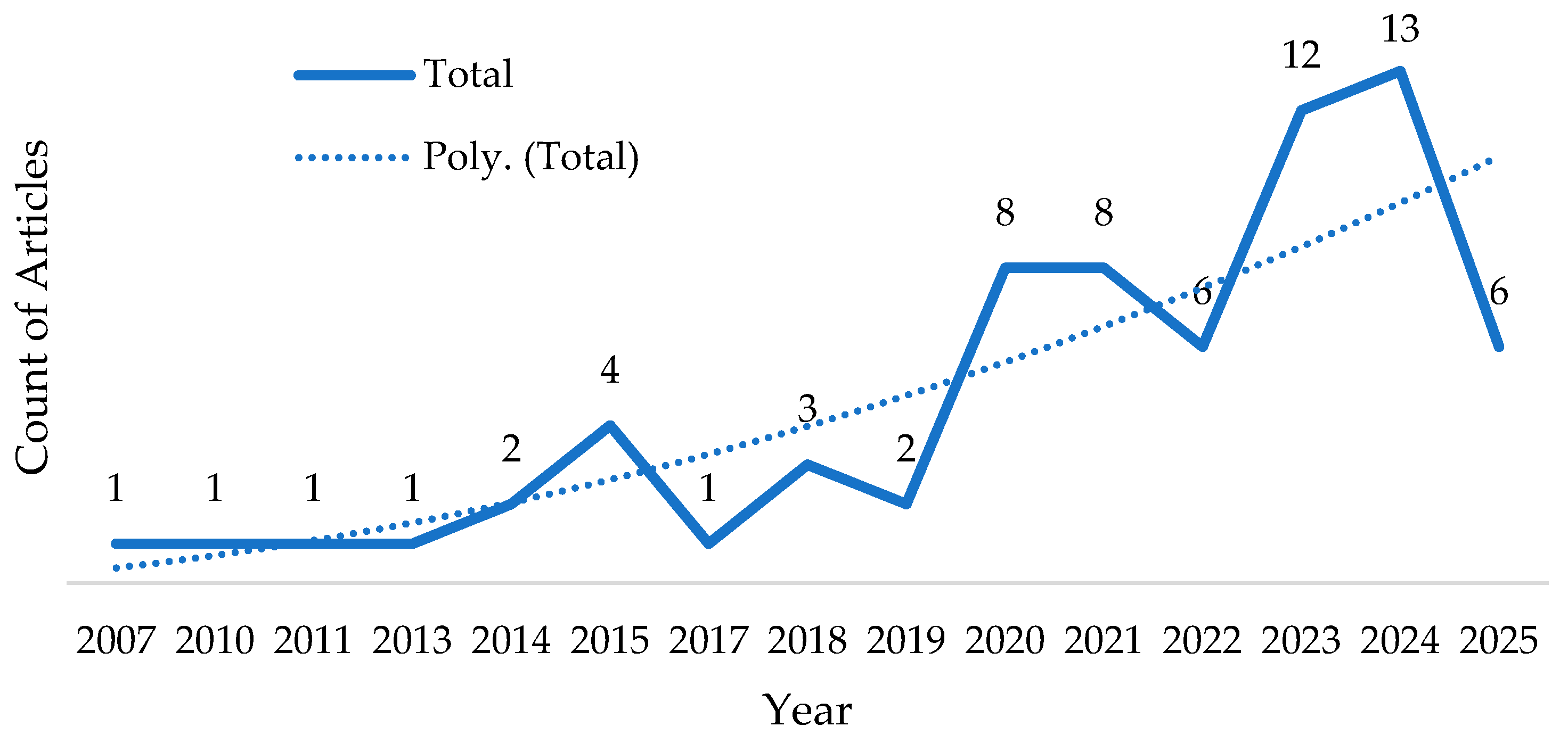- Page, M.J.; McKenzie, J.E.; Bossuyt, P.M.; Boutron, I.; Hoffmann, T.C.; Mulrow, C.D.; Shamseer, L.; Tetzlaff, J.M.; Akl, E.A.; Brennan, S.E.; et al. The PRISMA 2020 Statement: An Updated Guideline for Reporting Systematic Reviews. BMJ 2021, 372, n71. [Google Scholar] [CrossRef]