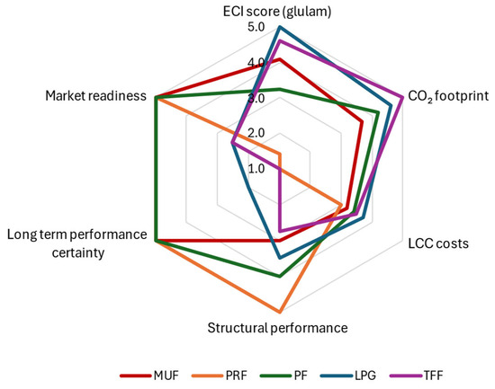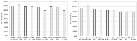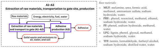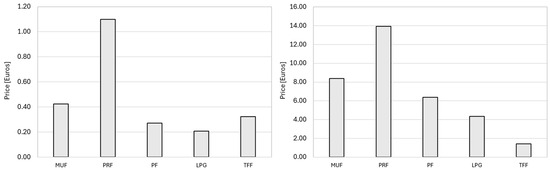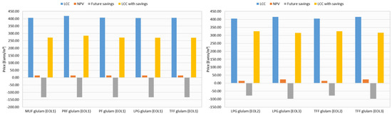 - The highest life cycle costs are associated with PRF, while the lowest are from LPG; however, these differences are not significant. Therefore, cost is not a decisive criterion in the selection of adhesive type.