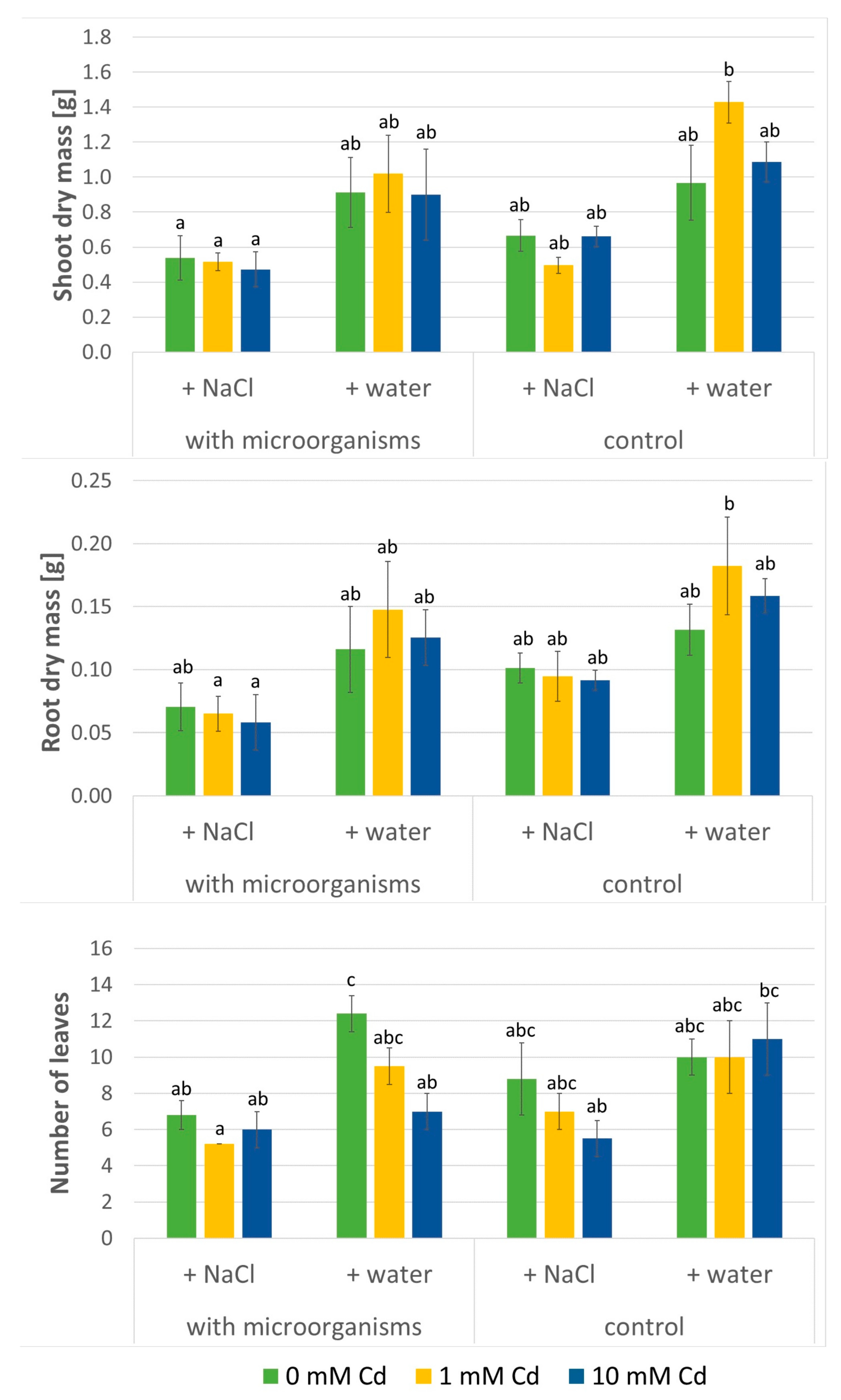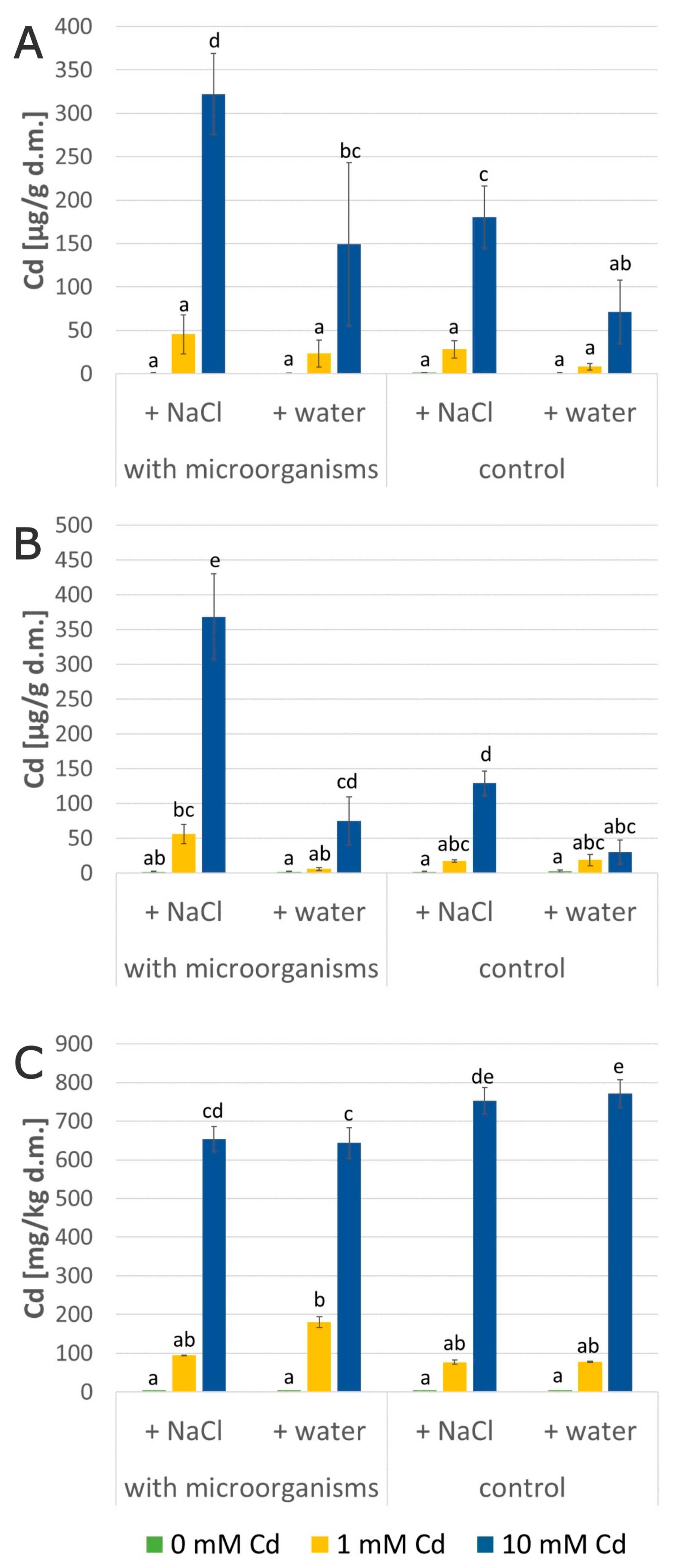 - Supel, P.; Śliwa-Cebula, M.; Miszalski, Z.; Kaszycki, P. Cadmium-tolerant rhizospheric bacteria of the C3/CAM intermediate semi-halophytic common ice plant (Mesembryanthemum crystallinum L.) grown in contaminated soils. Front. Plant Sci. 2022, 13, 820097. [Google Scholar] [CrossRef]