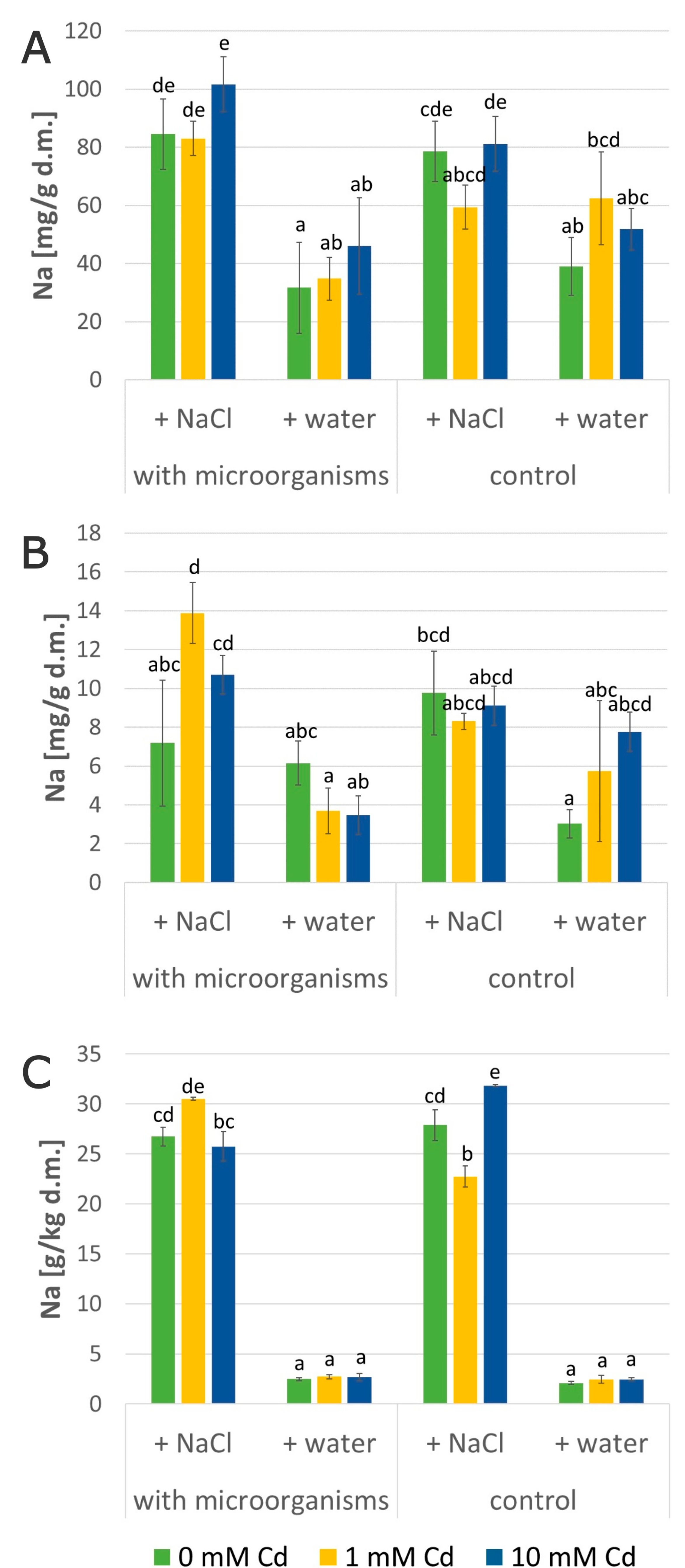 - Nosek, M.; Kaczmarczyk, A.; Jędrzejczyk, R.J.; Supel, P.; Kaszycki, P.; Miszalski, Z. Expression of genes involved in heavy metal trafficking in plants exposed to salinity stress and elevated Cd concentrations. Plants 2020, 9, 475. [Google Scholar] [CrossRef]