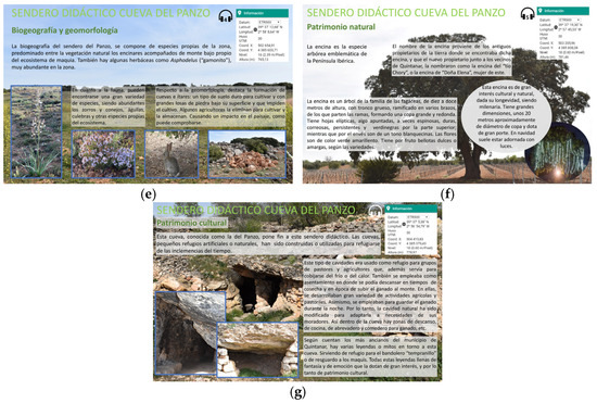 Considering what has been explained above, ESD is recognized as one of the essential components that should be included in a high-quality geotourism trail [26]. In this sense, the incorporation of ESD into geotourism trails allows visitors not only to appreciate the landscape and natural resources but also to understand the threats these elements face due to human activity and climate change [27]. However, most of the trails are not designed from this educational perspective, which can hinder visitors’ understanding and learning [14]. Also, the principles of sustainability and the importance of environmental conservation are not conveyed.