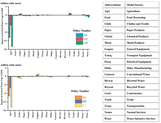 Figure 7 shows the impact of sectoral water usage under the different policy scenarios.