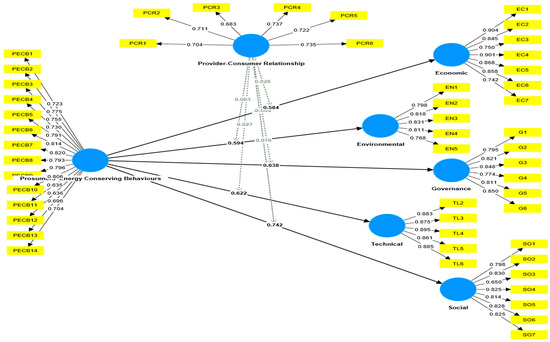 | H27 | Provider–consumer Relationship × PECB -> Environmental | 0.055 | 0.478 | Not significant | 0.000 | None | 0.559 | Moderate | ||