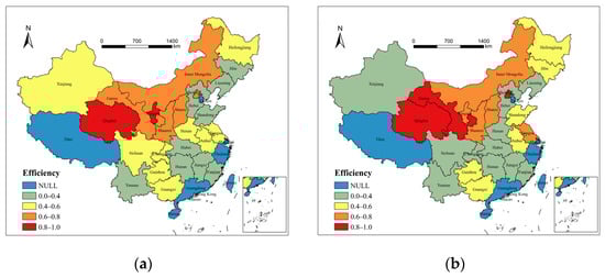 Figure 6). The comparison indicates that the introduction of the double-loop structure led to improvements in overall efficiency for most provinces, with particularly notable increases in resource-based regions such as Shanxi, Henan, Heilongjiang, and Ningxia, suggesting that the loop structure better captures the potential benefits of waste reutilization in major coal-producing provinces. In contrast, the efficiency of consumption-oriented regions such as Beijing, Jiangsu, Shandong, and Gansu declined, which is likely attributable to insufficient waste reutilization. The results also reflect the role of contextual economic and policy conditions. In resource-based provinces, higher efficiency scores are not only driven by waste reutilization but also supported by strong policy incentives for ecological restoration and corporate investment in environmental governance. In contrast, consumption-oriented regions with limited recycling practices and weaker policy enforcement tend to exhibit lower efficiency. Therefore, the model outcomes should be interpreted within the broader framework of China’s national circular economy strategy, provincial-level environmental regulations, and firm-level governance efforts. These contextual factors highlight the importance of aligning model-based evaluations with real-world economic structures and policy environments.