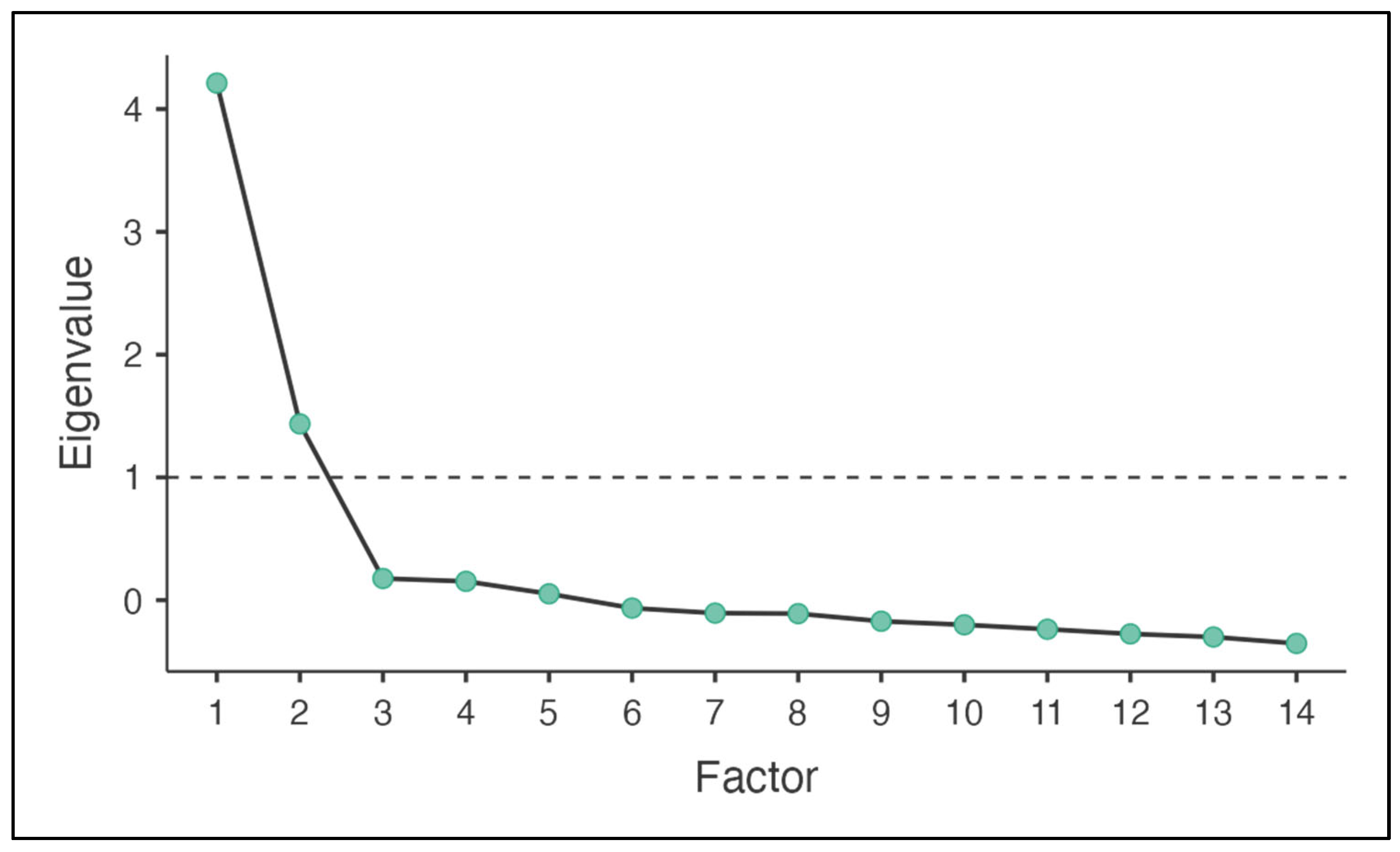 - Horn, J.L. A rationale and test for the number of factors in factor analysis. Psychometrika 1965, 30, 179–185. [Google Scholar] [CrossRef]
