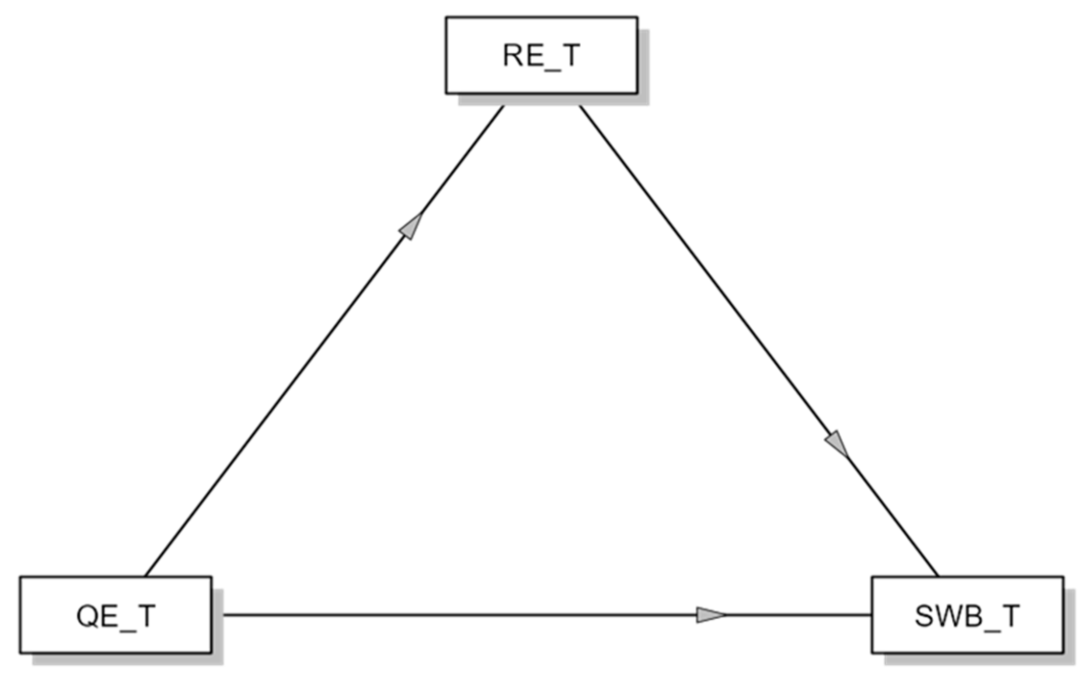 41]. However, further empirical evidence is needed to clarify the mechanisms through which these effects occur. In particular, it remains unclear whether the impact of QE on SWB is direct or mediated by RE. Moreover, recent literature highlights that post-COVID-19, individuals’ engagement with outdoor and green spaces has significantly increased, reinforcing the relevance of such research for contemporary urban life [