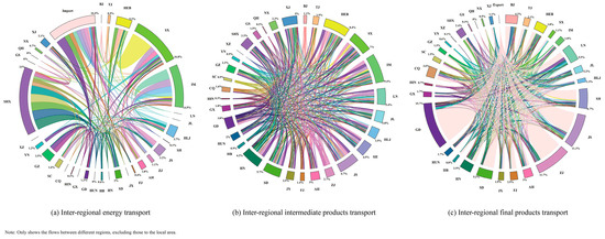 - Category 5: Hebei, Shandong, Shanghai, Anhui, Liaoning, and Jilin. These regions show a net inflow of ERCERs in energy transport but a net outflow in economic products transport. In particular, Liaoning and Jilin show a net outflow of ERCERs in both intermediate and final product transport, implying that they undertake a portion of the ERCERs for other regions.