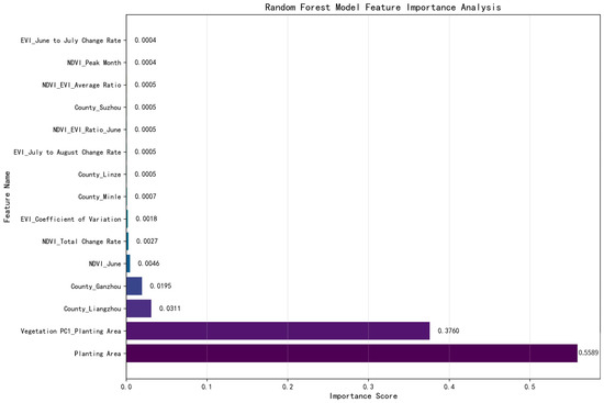 Given that crop growth is a complex ecological process, its relationship with remote sensing signals often exhibits nonlinear characteristics and involves multifactorial interactions. Traditional Ordinary Least Squares (OLS) models, which rely on linear assumptions, may struggle to comprehensively capture these complexities. Consequently, this research has progressed to its second phase, focusing on the exploration of machine learning models, particularly the Random Forest (RF) algorithm. As a robust ensemble learning method, Random Forest presents several theoretical advantages: it can automatically capture nonlinear relationships and feature interactions; it demonstrates strong robustness against multicollinearity and outliers in data; and it provides feature importance rankings that facilitate a deeper understanding of the model’s decision-making mechanisms [22].