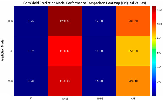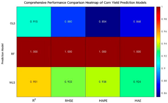 The box plot in the lower right corner of the Maizeer clearly illustrates the distribution of errors between the predicted results and the actual values. Most data points in the box plot are concentrated near the median line, and there are no significant outliers, indicating that the model exhibits high accuracy in its overall predictions. Furthermore, the error distribution of the WLS model appears to be relatively uniform and random, which further reinforces the robustness of the model.