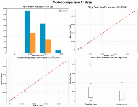 Another key finding of this study is the successful identification and quantification of the nonlinear relationship between NDVI and maize yield. By incorporating the quadratic term of NDVI_Aug into the model, we significantly improved its performance. This nonlinear relationship arises from the phenomenon of ‘NDVI saturation’: when vegetation coverage reaches an extremely high level, the growth rate of the NDVI slows down or even stagnates, while the biomass and potential yield of the crop may still exhibit an increasing trend. This effect cannot be captured by a simple linear model, resulting in an underestimation of yield in high-production areas. In contrast, a parabolic model that includes a negative quadratic term can effectively represent this trend of initial increase followed by leveling off. This demonstrates that the study’s advanced understanding of feature engineering and model configuration surpasses simplistic linear assumptions.