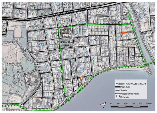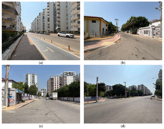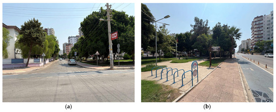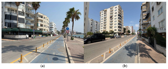 When we make an evaluation of the transportation scheme, it is seen that there are many north–south-oriented streets in Viranşehir Neighborhood, which is south of the D400 Highway, and that these streets open to Cengiz Topel and Barbaros Hayrettin Paşa Streets in the south. In addition to the pedestrianized Viranşehir Street axis, separated bicycle lanes have been created on the coastal road. The bicycle paths provide access to Viranşehir Neighborhood. When we examine the pedestrian circulation in the area, only Viranşehir Street within the ancient city of Soloi-Pompeipolis is partially pedestrianized. There are also pedestrian paths along the Mezitli Creek axis. During the summer months, the coastal spine on the shoreline of Viranşehir Neighborhood is closed to vehicle traffic between 18:00 and 01:00 by the decree of the MMM. As can be seen, pedestrian-oriented arrangements in the area focus only on recreational activities of pedestrians. Walkability is ignored in terms of daily use of the residential area and access to social facilities (Figure 13 and Figure 14).