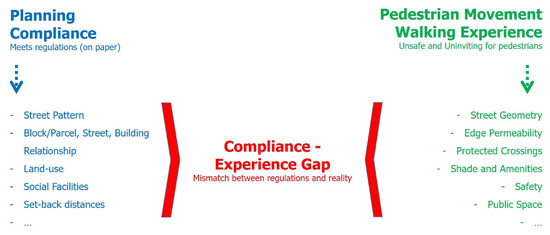 As a key component of urban livability, walkability represents both a spatial and political construct, shaped by socio-economic realities and concerns of environmental justice. It requires urban spaces that are safe, accessible, and conducive to walking for everyday purposes and leisure [6]. Walkability is shaped by various factors, including the quality of pedestrian infrastructure, streetscapes, sidewalks, road conditions, the built environment, and above all, urban design.