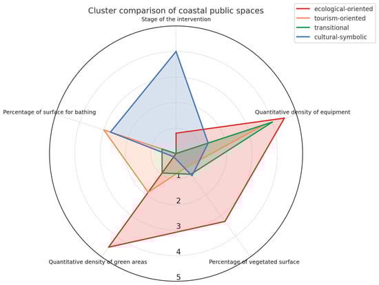 The originality of this research lies in the construction and application of a comparative analytical framework for assessing coastal public spaces in large Euro-Mediterranean cities. By combining functional typologies, ecological indicators, and coastal usability indicators—including equipment density and direct access to the sea—the study contributes to the ongoing debate on urban maritimity, understood as the spatial, functional and cultural relations defining the spatial, functional and symbolic articulation of the city-sea relationship [43].