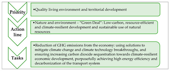 Latvia, along with other EU Member States, has developed a strategy to achieve climate neutrality by 2050 [25]. This strategy aims not only to reduce GHG emissions across all economic sectors but also to increase CO2 sequestration. The overarching objective is to achieve climate neutrality by 2050 (see Table 2).