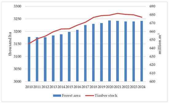 In the course of the policy document analysis, attention was focused on Latvia’s overarching long- and medium-term national development planning programmes, as well as strategies relevant to climate neutrality and the construction sector. To assess timber resource availability, the current situation regarding forest area and timber stock, along with their development dynamics, was analysed. The authors also addressed the necessity of revising the numerical threshold for minimum felling diameter. In analysing the timber product market, the authors identified timber product categories and focused specifically on those categories related to the construction sector. This study examined the volumes and trends of timber production, import, and export. Fuelwood was not included within the scope of this research.