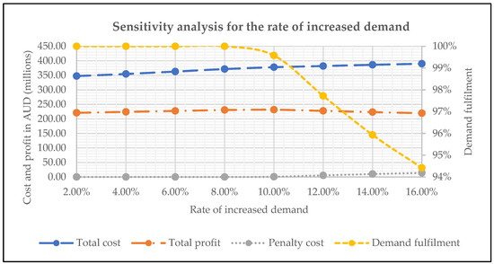 In this globally interconnected world, supply chains have become very complex as many risks and uncertainties are present. One of the major supply chain risks is changes in product demand [1]. There are many potential reasons behind the changes in demand, such as an increase in population, model, and brand changes, new product introductions, competition, and changes in customer income and choice. Demand changes have major impacts on supply chain planning as supply, production, and distribution need to be updated according to the changes. Otherwise, the supply chain could face numerous financial and reputational losses [2]. One of the effective ways to manage demand changes in supply chains is to develop a more resilient supply chain [2,3,4,5] that can respond to changes and revise supply, production, and distribution plans to manage the changes.