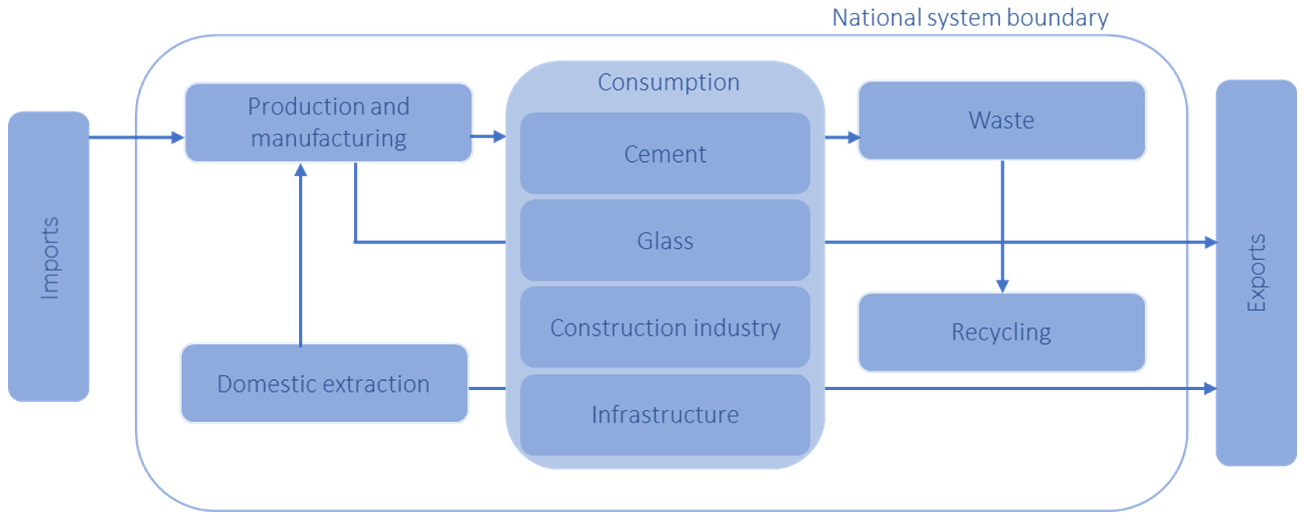 2.2. Defining the System Boundary and the Conceptual Framework Applied for MFA Indicators