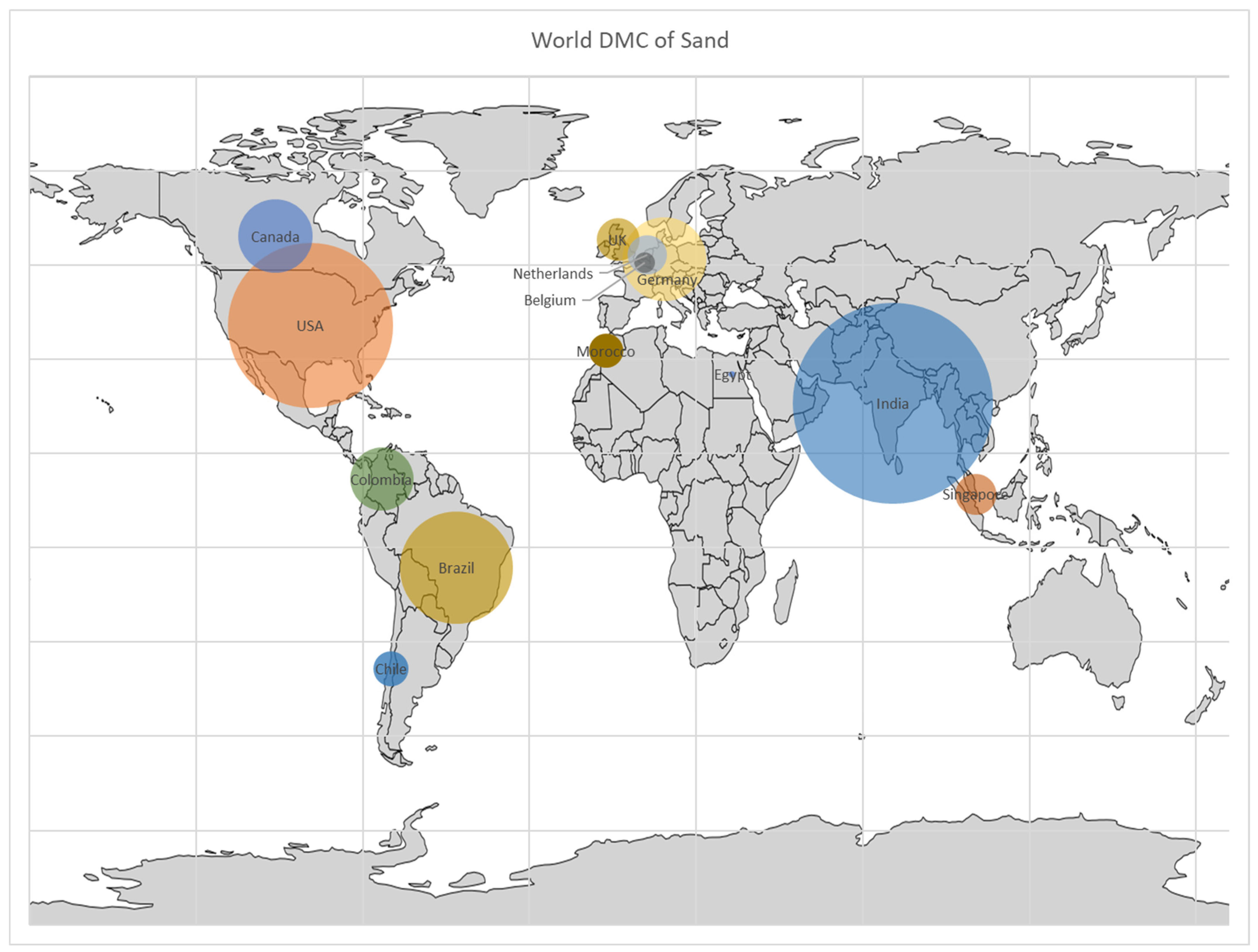 - Domestic Material Consumption (DMC), where DMCsand = DMIsand − Esand;