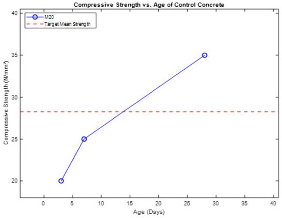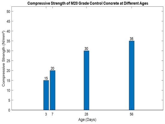 Compressive strength of M20-grade control concrete at different ages.