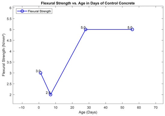 Flexural strength vs. age in days of control concrete.