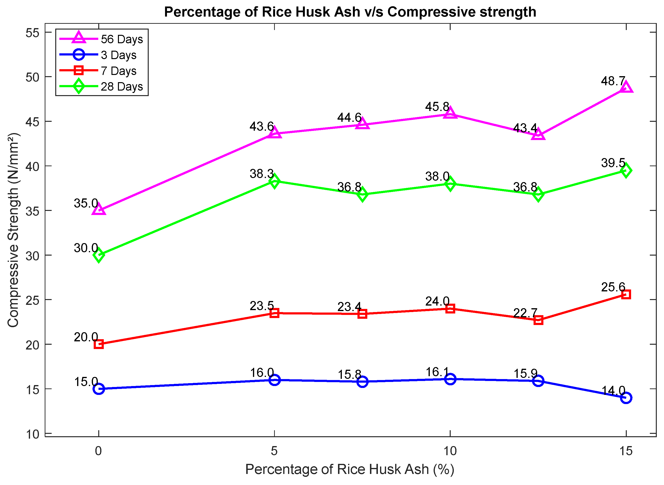Rice Husk ash Concrete | 31.5 | 31 | 30 | 30.14 | 25 | - | 3.62 | 3.84 | 2.75 | 2.24 | 2.08 |