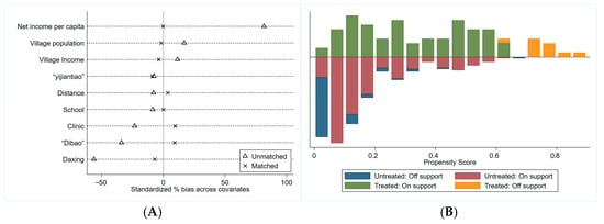 As shown in Table 10, the implementation of the SDC policy has brought changes both in the conduct of village cadres’ official duties and in villagers’ satisfaction with public goods. After the implementation of the policy, village cadres generally performed their duties in accordance with regulations—though the change was not statistically significant—while villagers’ satisfaction with public services increased markedly. Farming households reported significantly higher satisfaction with roads, clinics, drinking water, as well as irrigation and drainage facilities. This improvement is associated with increased trust resulting from cadres’ compliance with regulations under enhanced supervision [53], reflecting, to some extent, farmers’ approval of the policy and a substantial boost in their satisfaction with village governance.