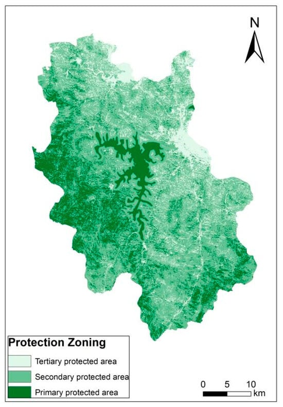 Secondary Protection Zone. Covering 22.9% of the district, these areas are mainly distributed around Nanwan Reservoir and its surrounding buffer zones. With moderate ecological sensitivity and relatively higher carrying capacity, they can accommodate regulated ecotourism activities. Key management measures include establishing eco-corridors, limiting visitor flow, and enforcing strict buffer protection. Stakeholder participation is crucial, particularly involving local residents, cultural operators, and tourism enterprises in eco-friendly tourism projects such as eco-villages, cultural towns, and water-based recreation.