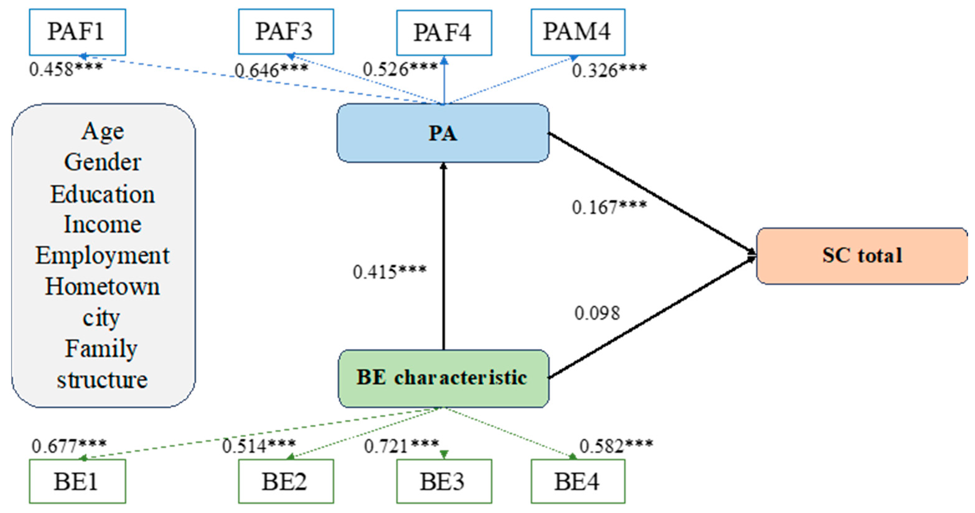 4.3. The Impact of the Built Environment and Physical Activities on Social Capital Structure