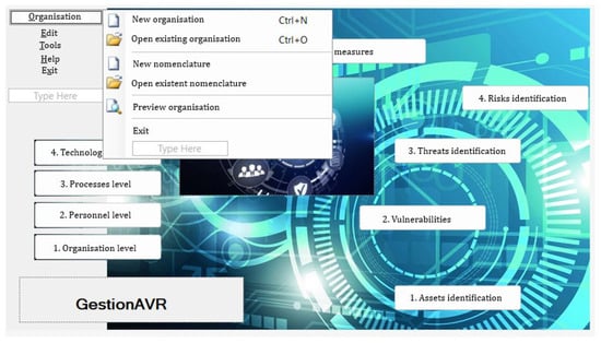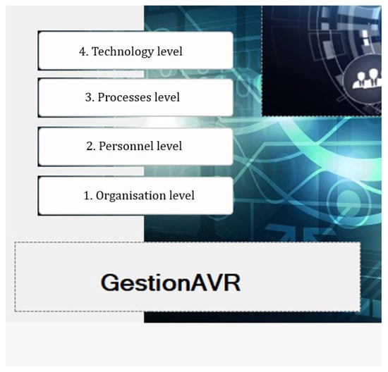 The application developed and used for risk management was called GestionAVR (Gestionarea Amenințărilor, Vulnerabilităților și Riscurilor—engl. Threat, Vulnerability and Risk Management). Risk management is approached as a systematic and iterative process [41,42] for optimizing resources in accordance with the organizational risk management policy. Risk management is integrated into daily activities through defined roles and responsibilities in all areas of activity and helps to include risk treatment aspects in management practices and decision-making throughout the entire life cycle of the organization’s activities. The tool GestionAVR could support across all phases of the risk management lifecycle: from risk identification, risk assessment, mitigation planning, implementation and monitoring, stakeholder communication to continuous improvement.