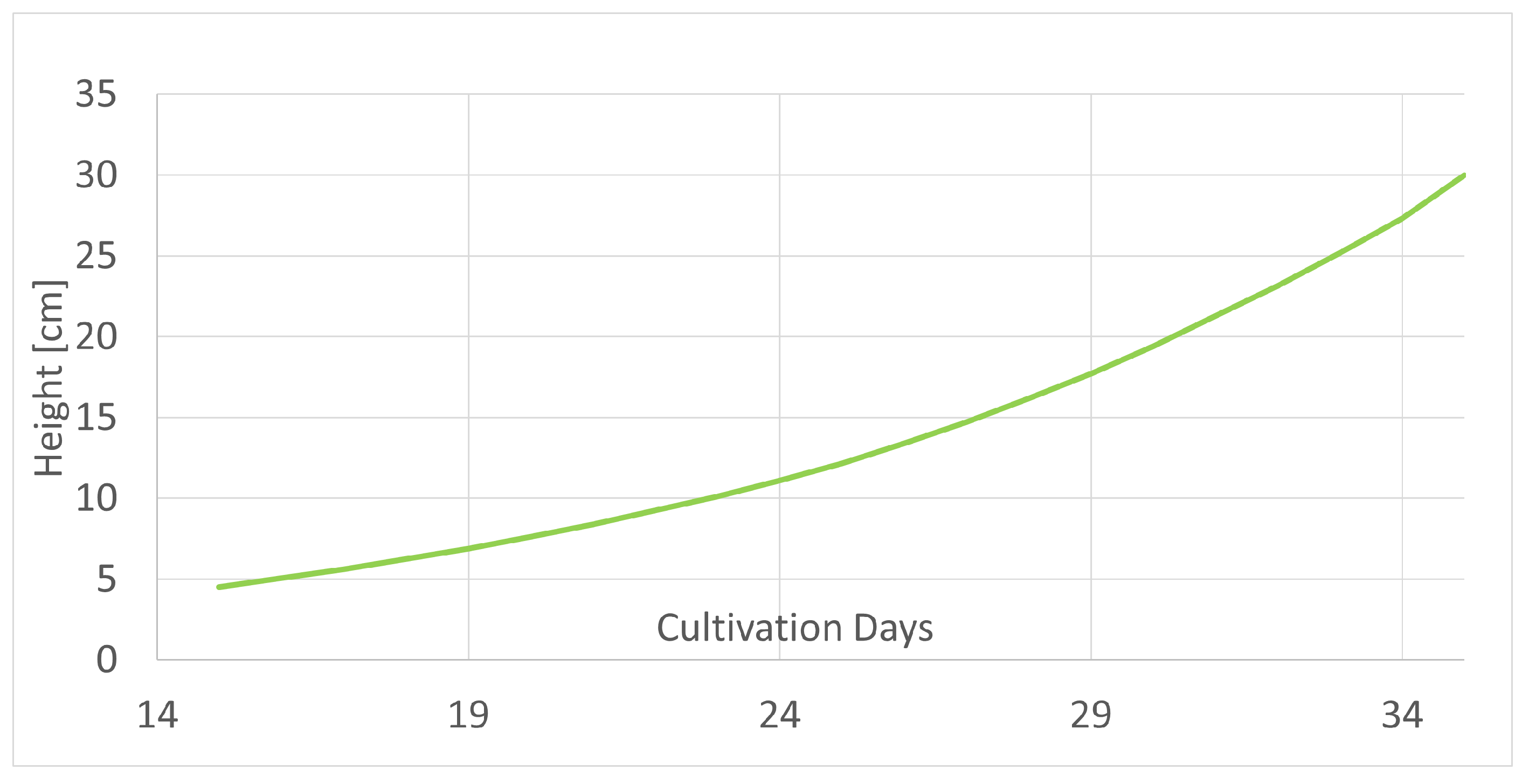 - Tei, F.; Scaife, A.; Aikman, D. Growth of lettuce, onion, and red beet. 1. Growth analysis, light interception, and radiation use efficiency. Ann. Bot. 1996, 78, 633–643. [Google Scholar] [CrossRef]