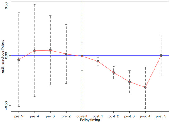 This result aligns with the findings of Mushtaq and Bruneau [48], who demonstrate that the development of local financial institutions exerts a significant narrowing effect on both absolute and relative urban-rural income disparities at the county level. The implementation of the GFRIPZ policy has catalyzed new growth opportunities for local financial institutions, facilitating their expansion and deepening financial inclusion. This, in turn, promotes more equitable income distribution between urban and rural residents. Therefore, the observed negative and significant coefficient on the GFRIPZ policy in our baseline regression not only confirms the hypothesized policy effect but also resonates with existing literature on the economic benefits of financial sector development in reducing income inequality.